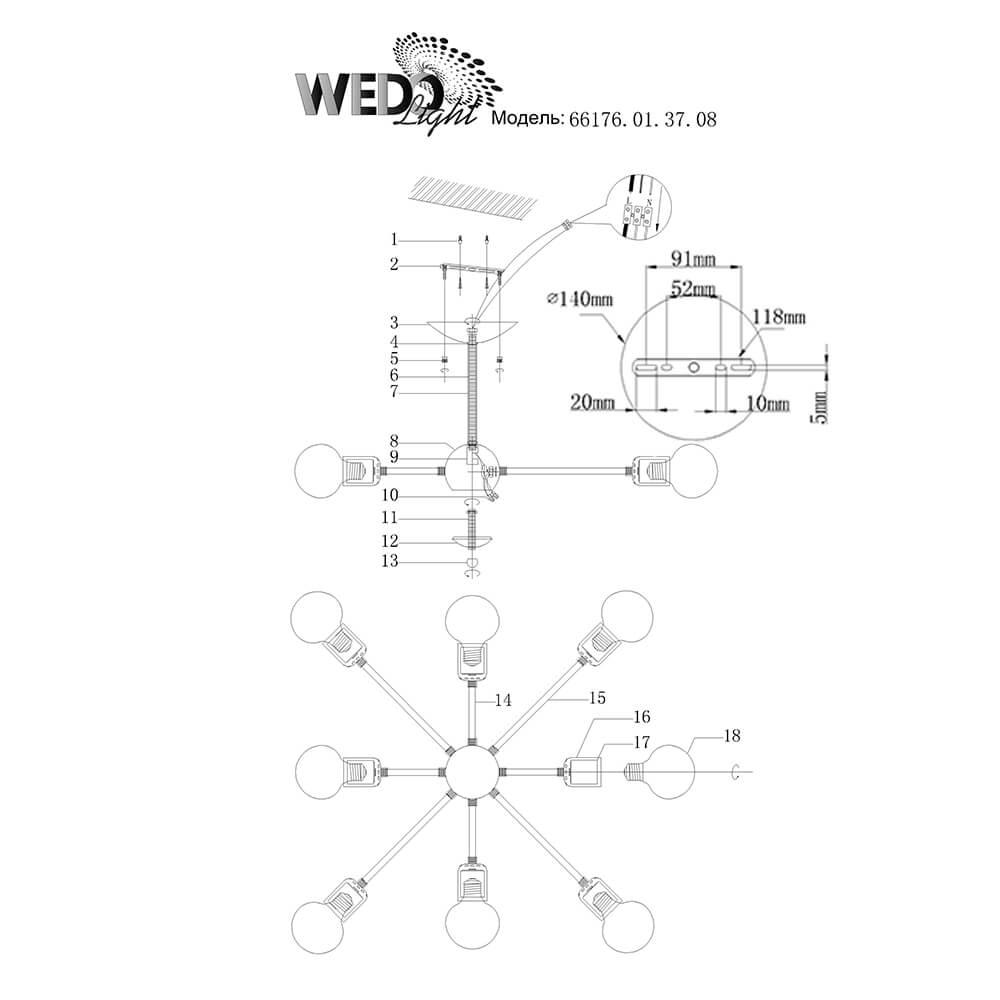 Характеристики Люстра на штанге Seven Fires 66176.01.37.08