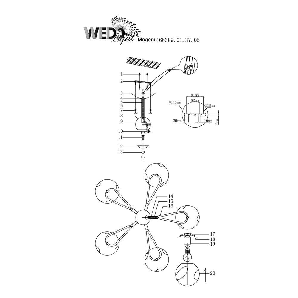 Характеристики Люстра потолочная Seven Fires 66389.01.37.05