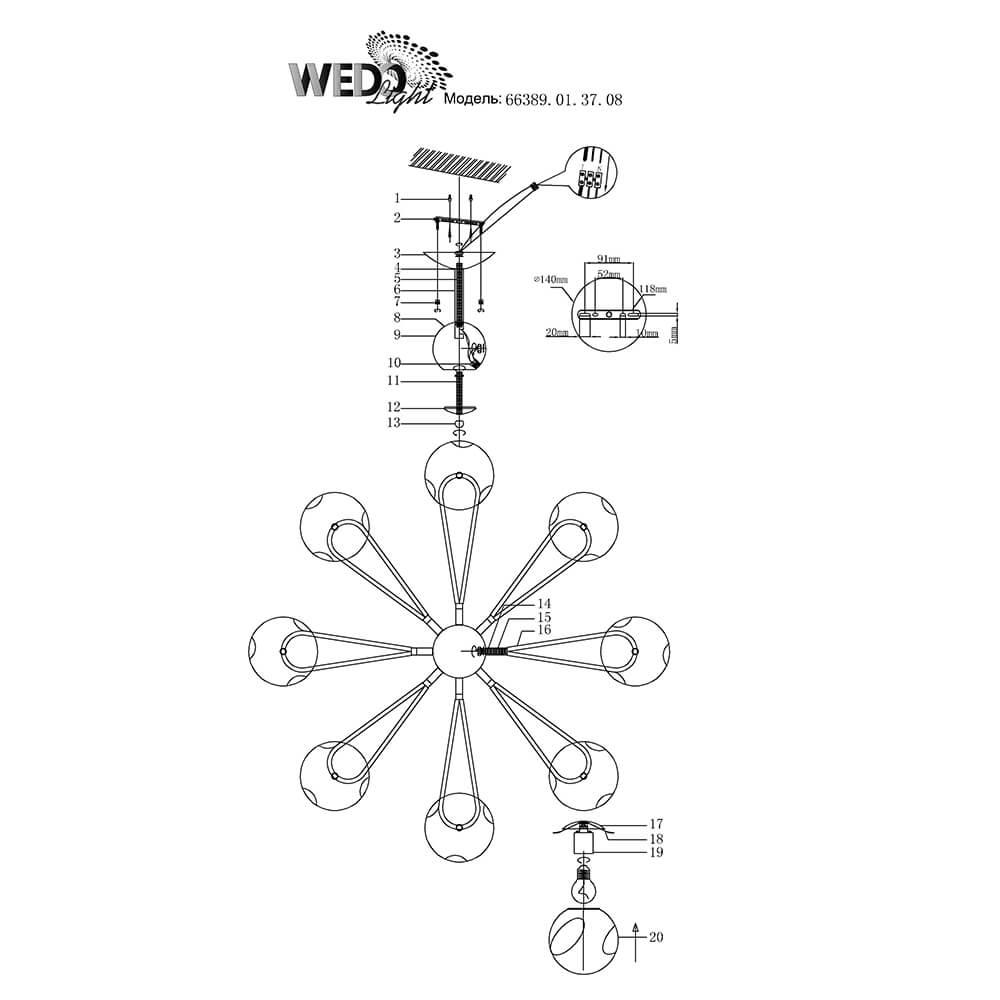 Характеристики Люстра потолочная Seven Fires 66389.01.37.08
