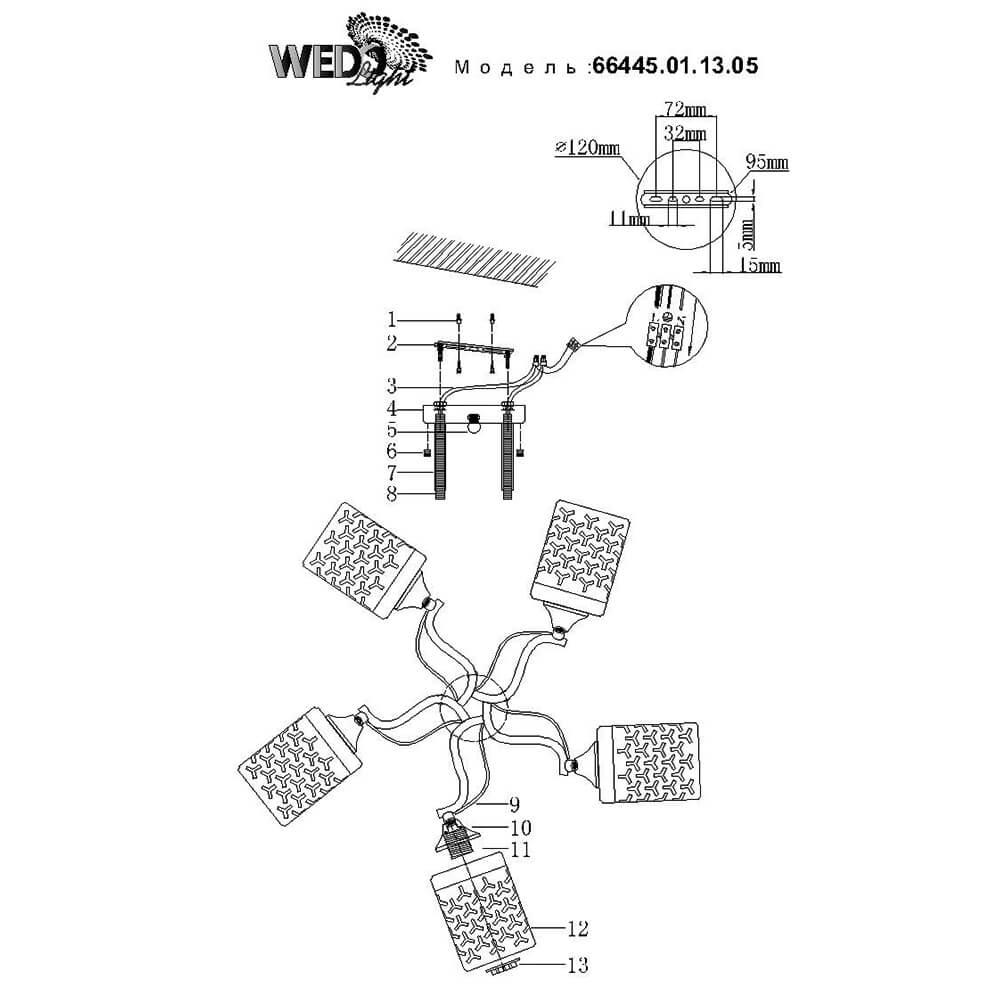 Характеристики Люстра потолочная Seven Fires 66445.01.13.05