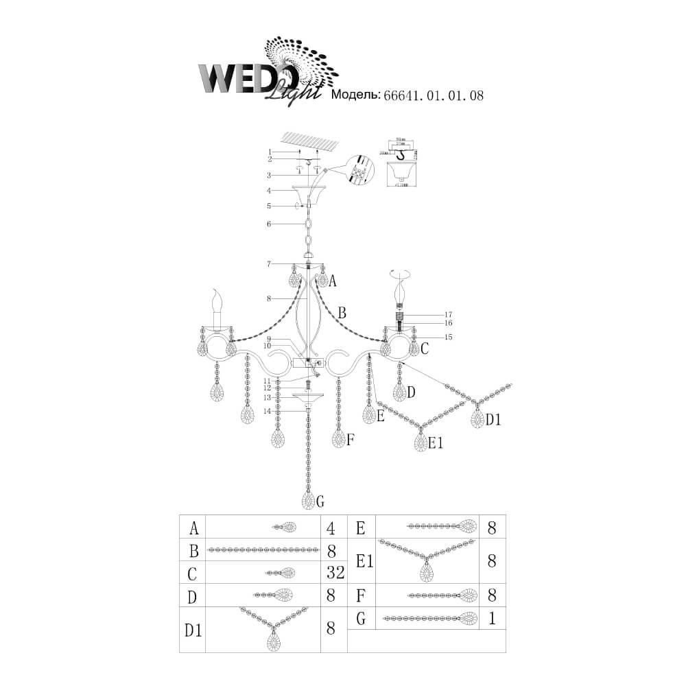 Характеристики Люстра подвесная Seven Fires 66641.01.01.08
