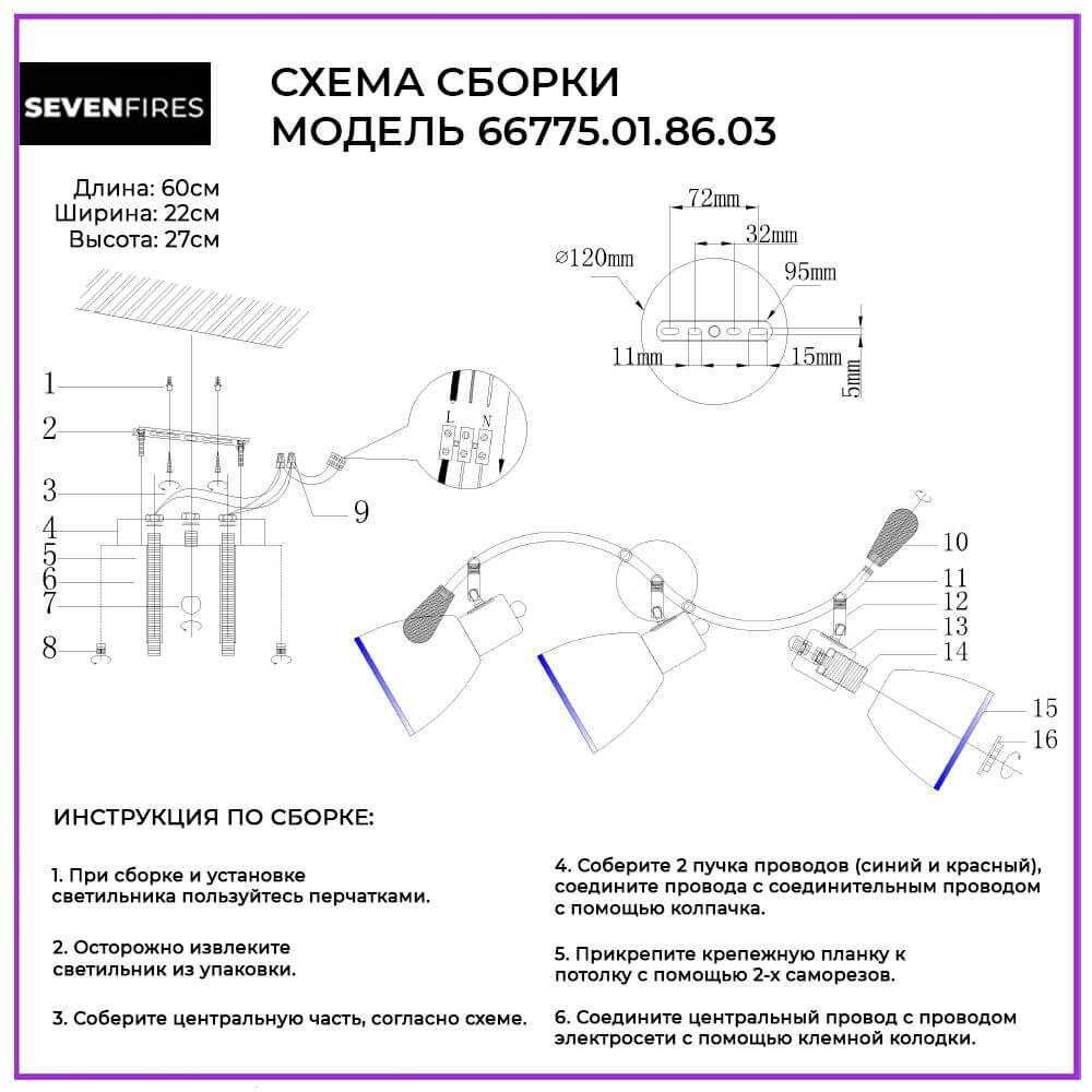 Характеристики Светильник настенный Seven Fires 66775.01.86.03
