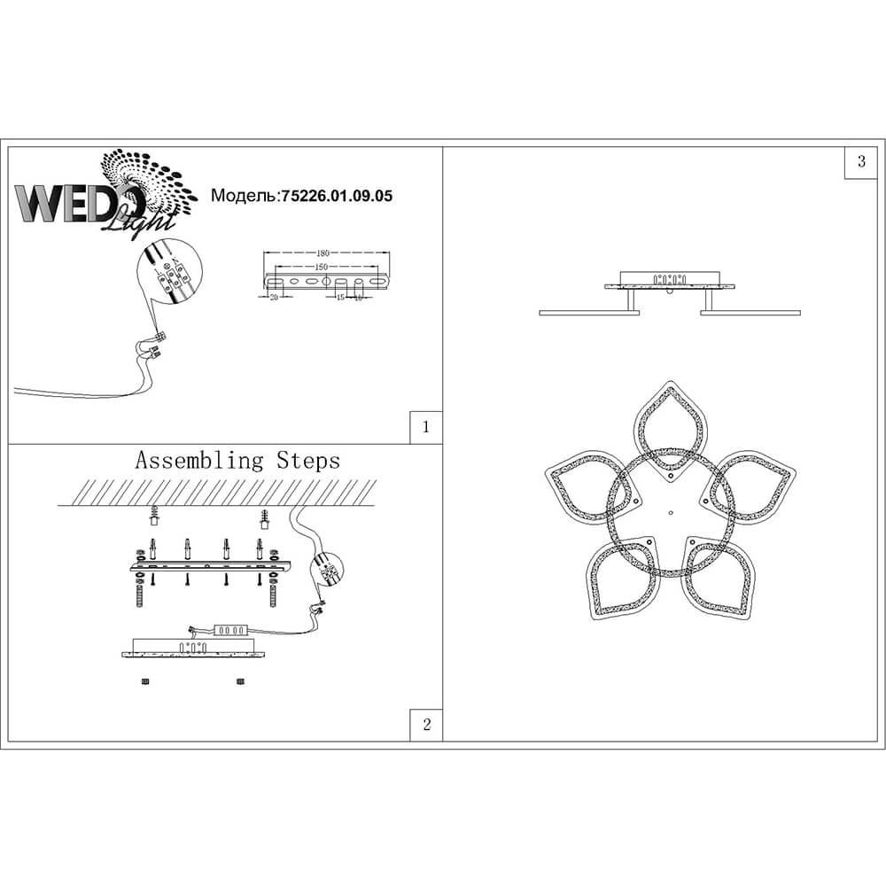 Характеристики Люстра потолочная светодиодная Seven Fires 75226.01.09.05 с пультом д/у