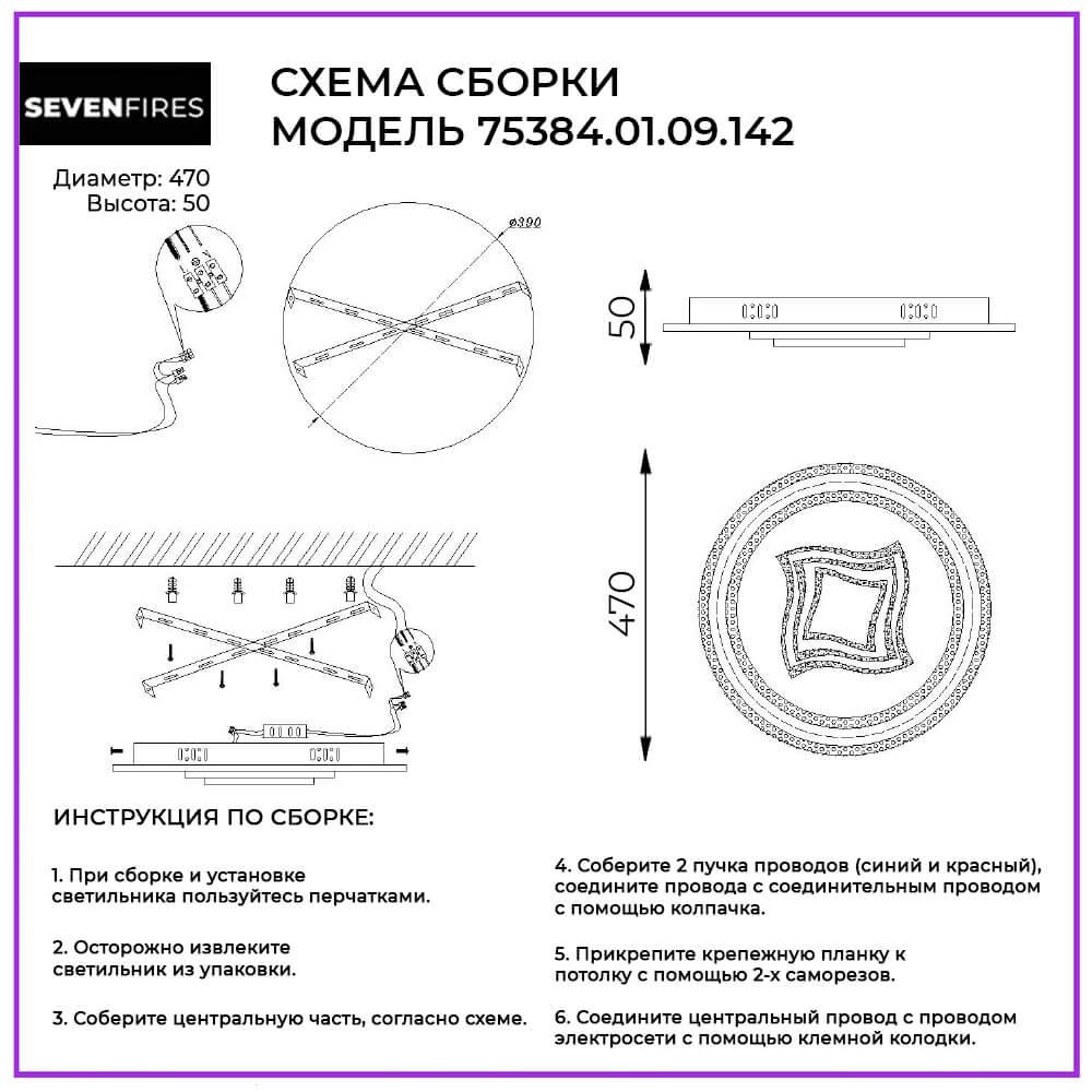 Характеристики Светильник потолочный светодиодный Seven Fires 75384.01.09.142 с пультом д/у