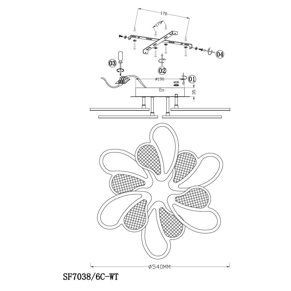 Характеристики Люстра потолочная светодиодная Seven Fires SF7038/6C-WT с пультом д/у
