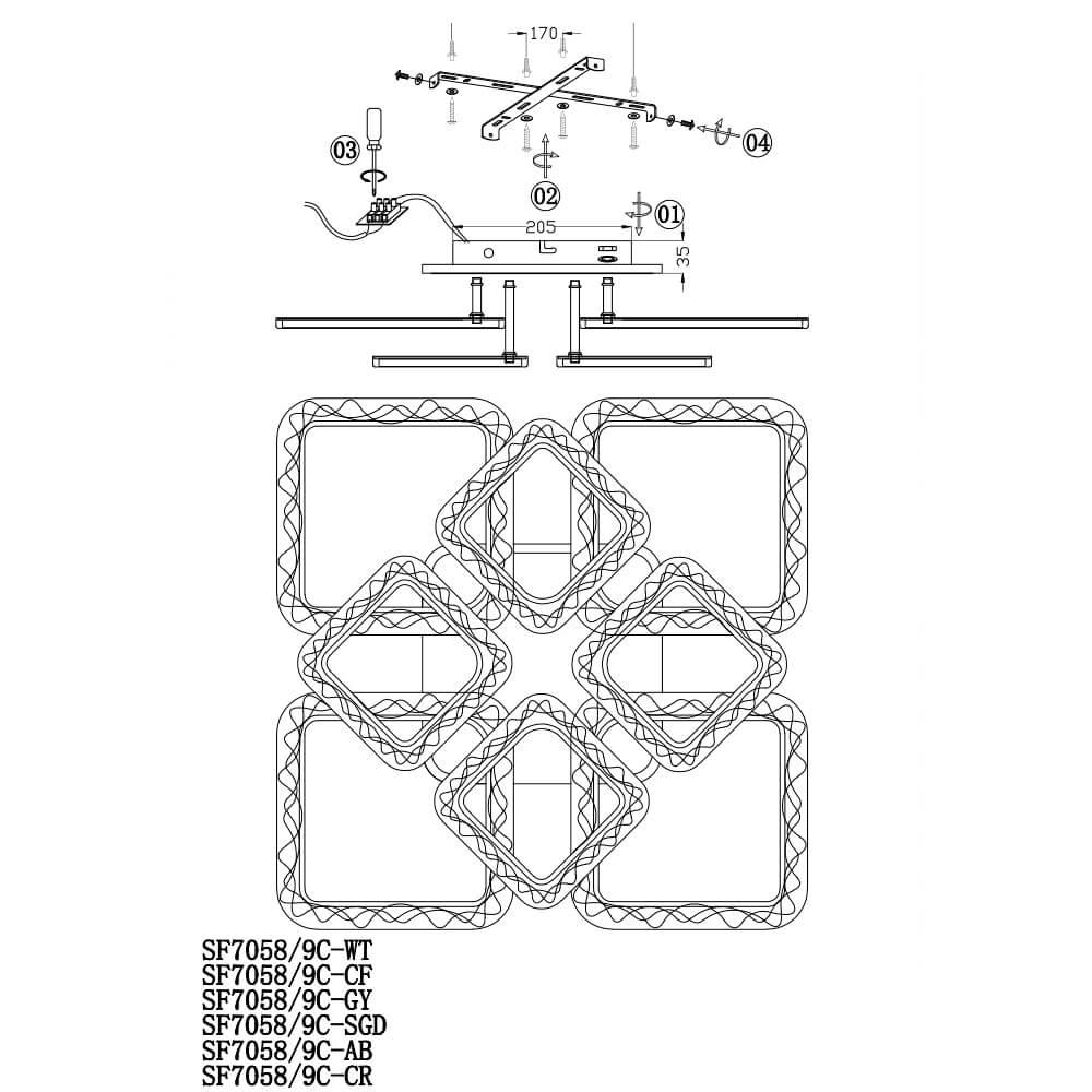 Характеристики Люстра потолочная светодиодная Seven Fires SF7058/9C-AB-BL с пультом д/у