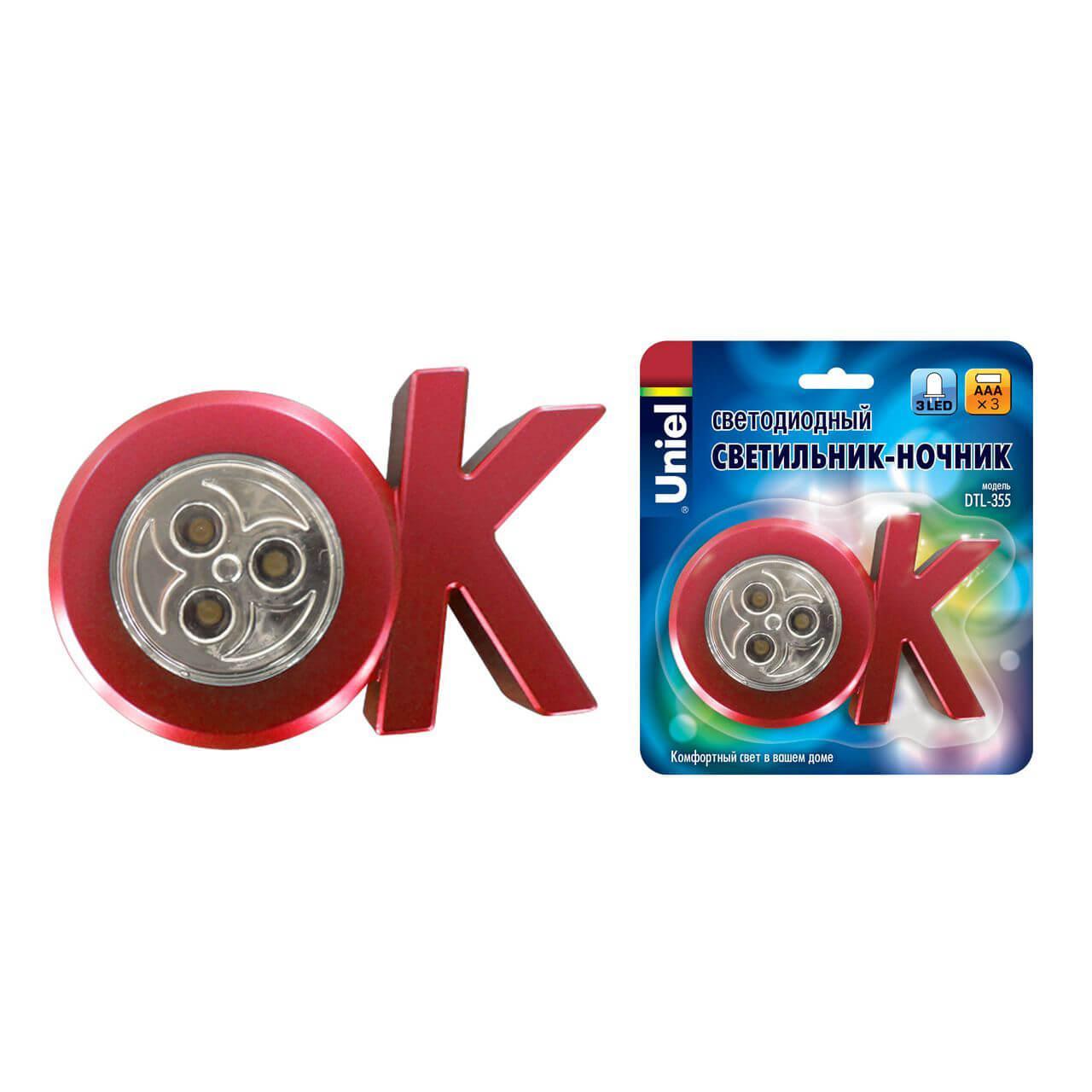 Светильник ночник светодиодный Uniel DTL-355 OK/Red/3LED/3AAA
