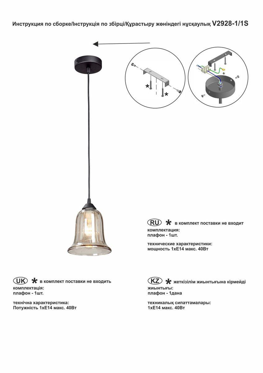 Характеристики Светильник подвесной Vitaluce V2928-1/1S