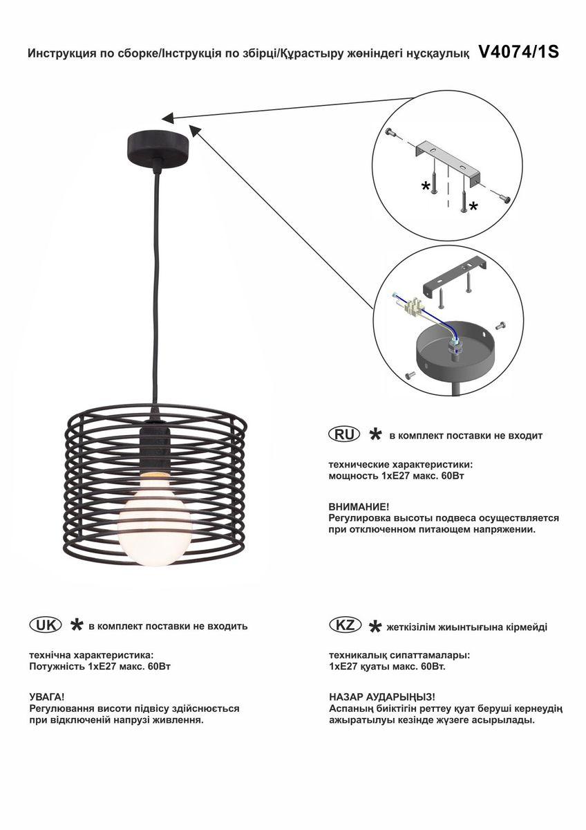 Характеристики Светильник подвесной Vitaluce V4074/1S
