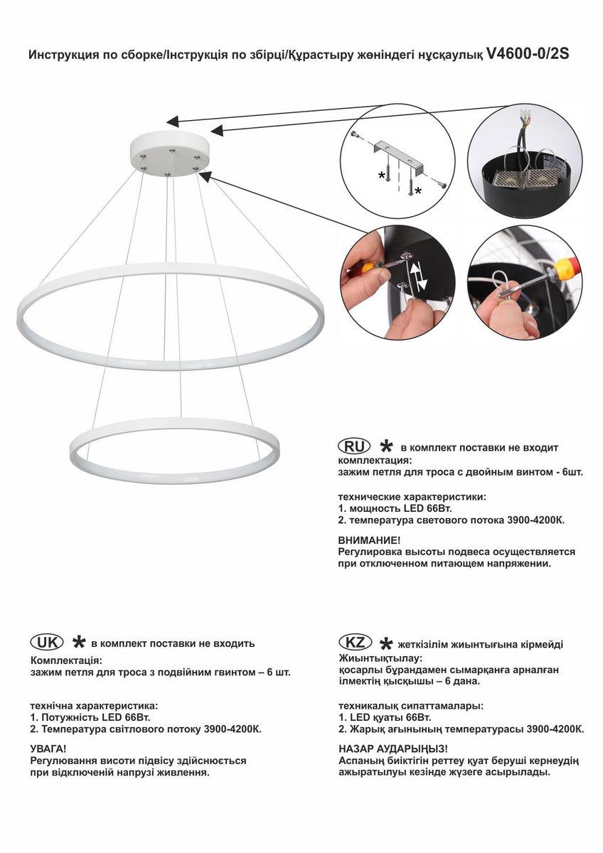 Характеристики Светильник подвесной светодиодный Vitaluce V4600-0/2S