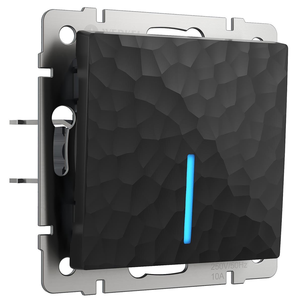 Выключатель Werkel Hammer одноклавишный проходной с подсветкой черный W1212108 4690389162145