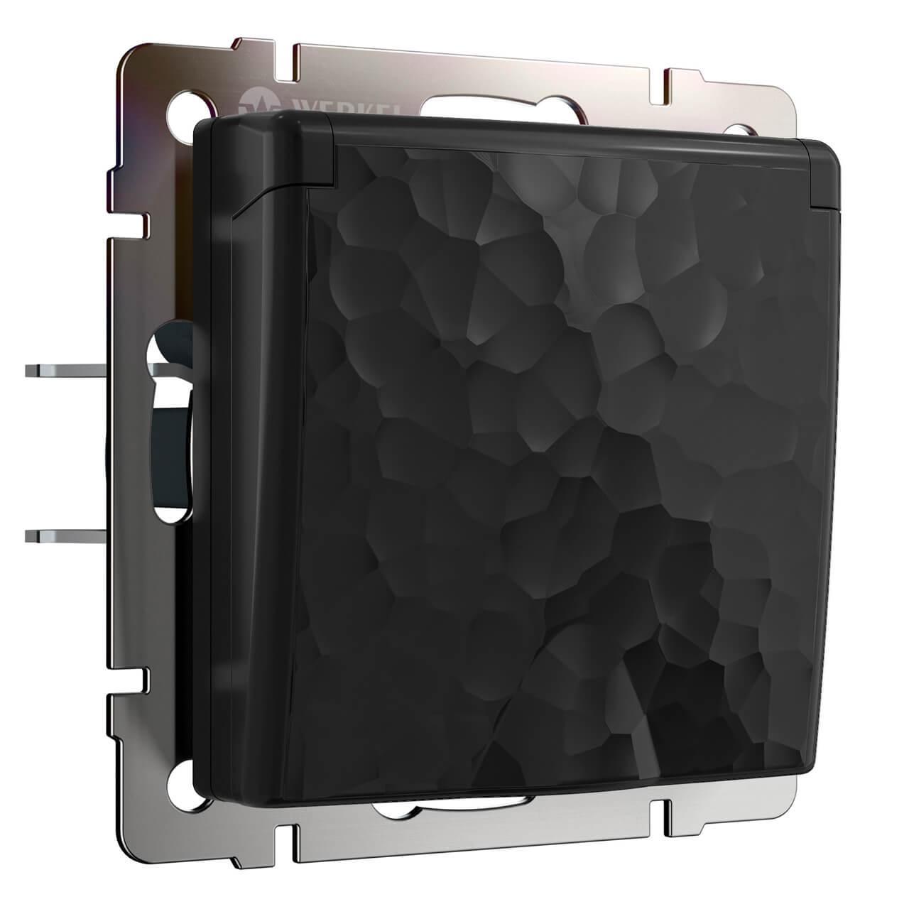 Розетка Werkel Hammer влагозащищенная с заземлением с защитой крышкой и шторками черный W1271208 4690389162886